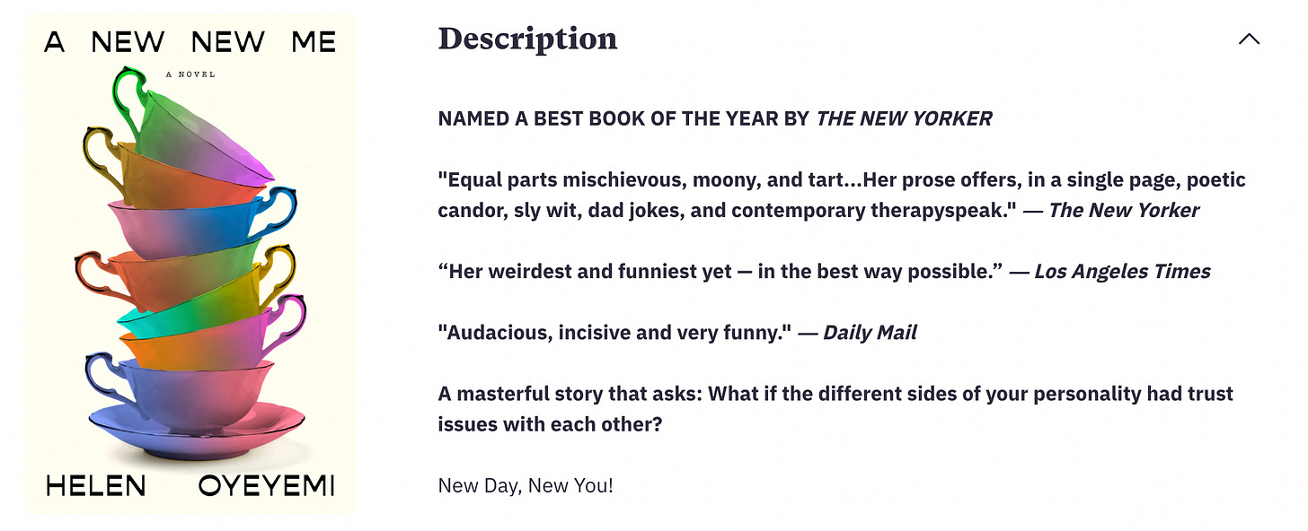 A New New Me, Helen Oyeyemi, 2025 | ⭐️ ⭐️ ⭐️ ⭐️ ⭐️